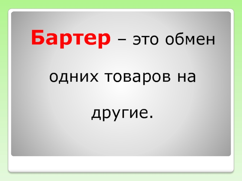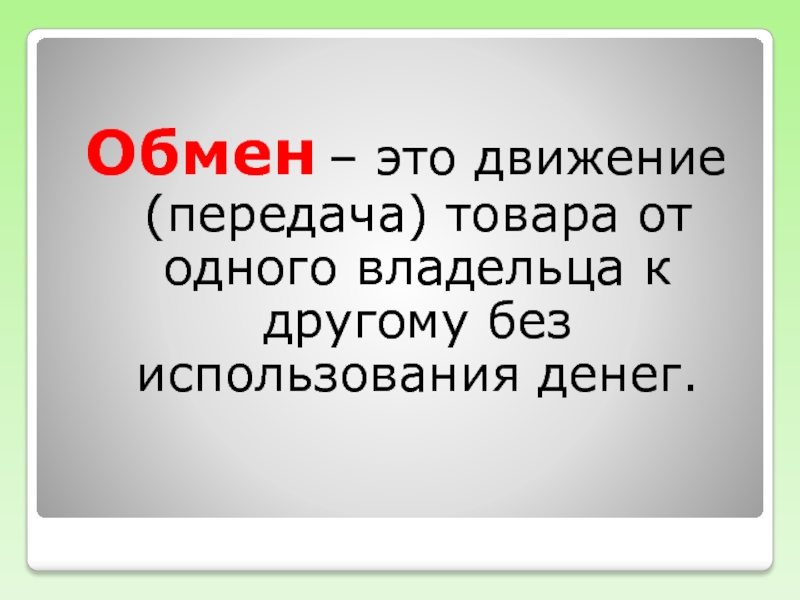 Обмен – это движение (передача) товара от одного владельца к другому без использования денег.