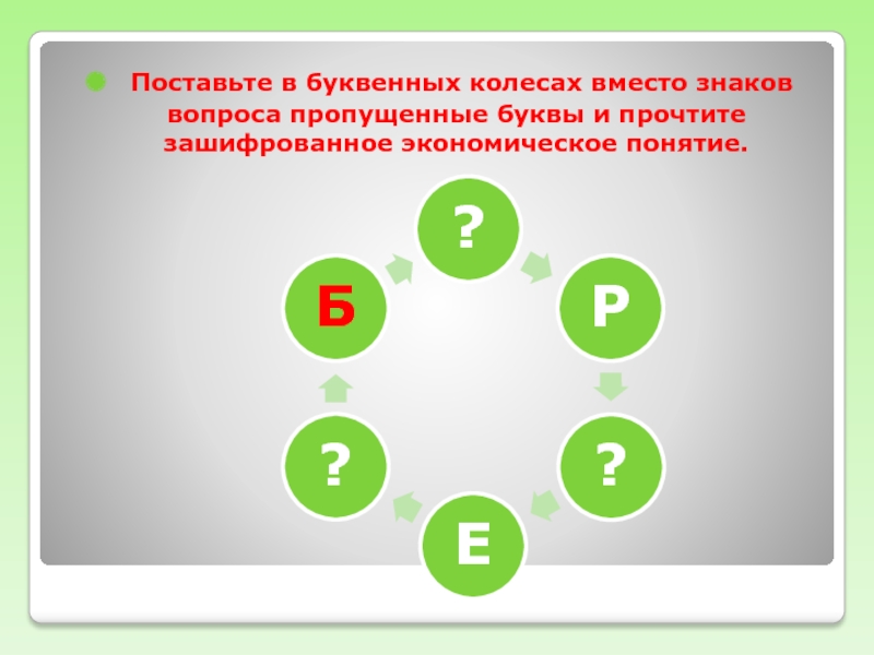 Поставьте в буквенных колесах вместо знаков вопроса пропущенные буквы и прочтите зашифрованное экономическое понятие.