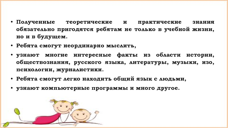 Также в разы углубляется и прочнее усваивается материал уроков, заметно улучшается речь, появляются навыки анализа текста, воспитывается культура общения.