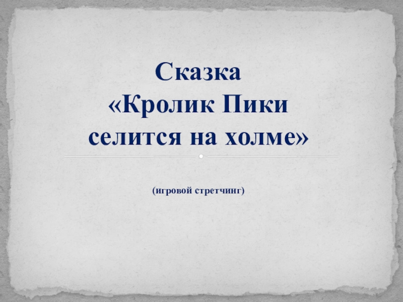 Презентация, доклад к занятия по игровому стретчингу к сказке Кролик Пики селится на холме