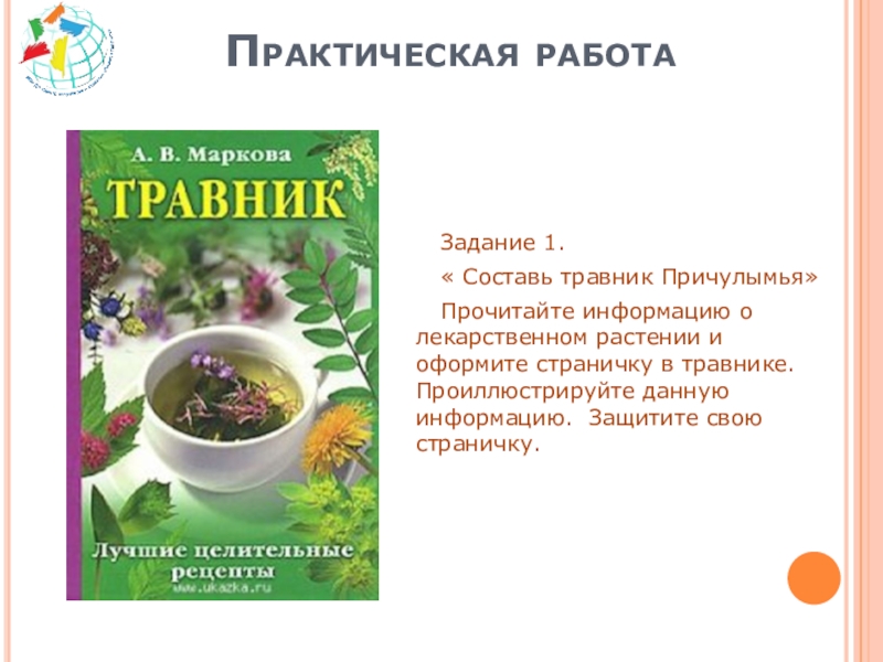 и оформите страничку в травнике. Проиллюстрируйте данную информацию. Защитите свою страничку.