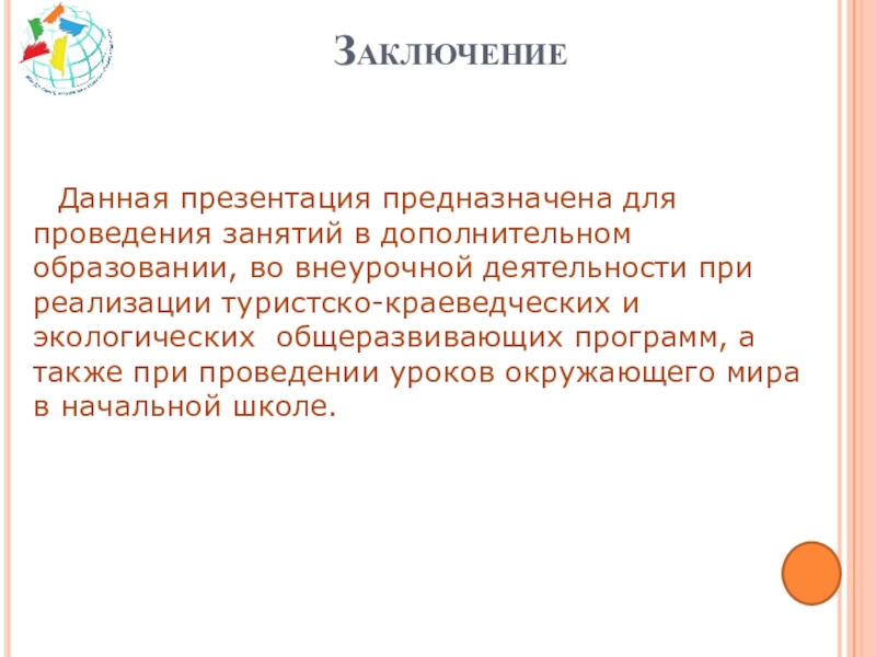 деятельности при реализации туристско-краеведческих и экологических общеразвивающих программ, а также при проведении уроков окружающего мира в начальной школе.