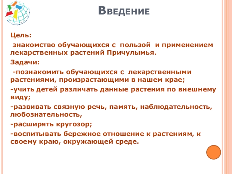 знакомство обучающихся с пользой и применением лекарственных растений Причулымья.