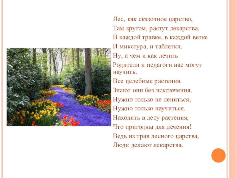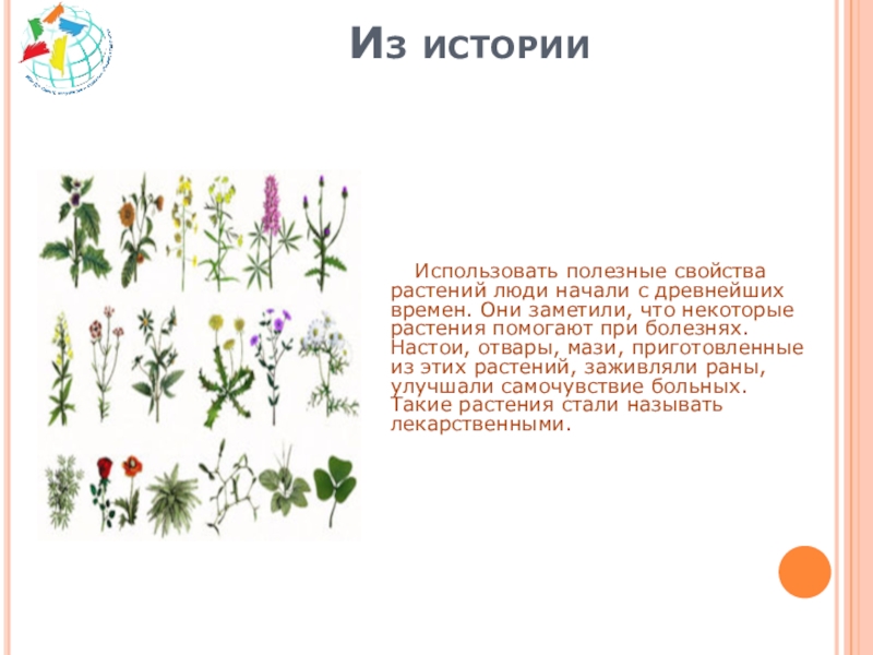 что некоторые растения помогают при болезнях. Настои, отвары, мази, приготовленные из этих растений, заживляли раны, улучшали самочувствие больных. Такие растения стали называть лекарственными.