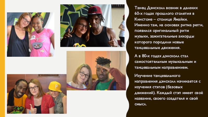 Слайд 6Танец Дэнсхолл возник в далеких 60-х годах прошлого столетия в Кинстоне – столице
