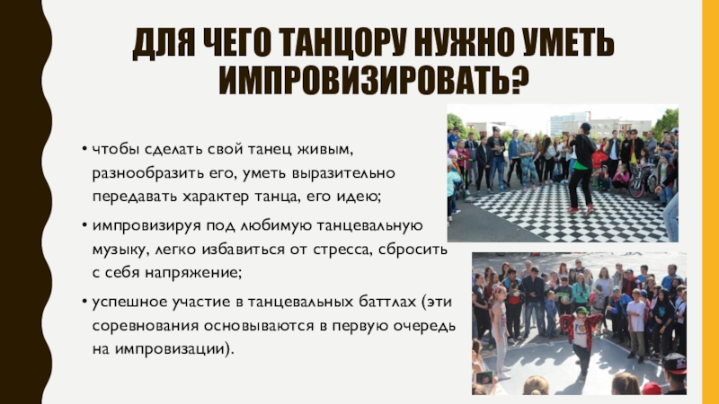 Слайд 10Для чего танцору нужно уметь импровизировать?