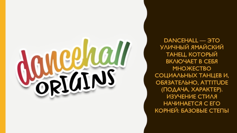 Слайд 5Dancehall — это уличный ямайский танец, который включает в себя множество социальных