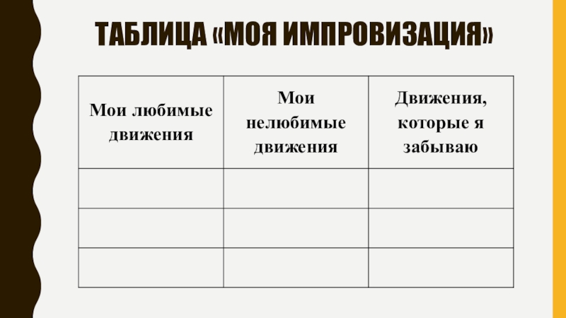 умения исполнения основных шагов и работы с таблицами «Моя импровизация»;
