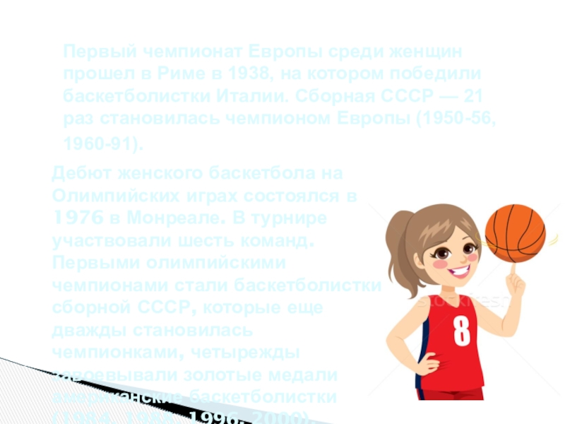 котором победили баскетболистки Италии. Сборная СССР — 21 раз становилась чемпионом Европы (1950-56, 1960-91).