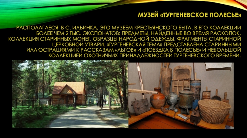 Располагаеся в с. Ильинка, это музеем крестьянского быта. В