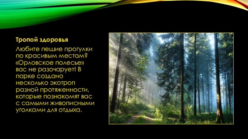 Слайд 2Национальный парк «Орловское полесье» занимает территорию более 77 га.