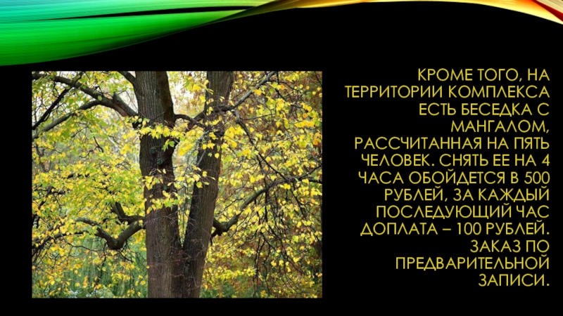 Кроме того, на территории комплекса есть беседка с мангалом, рассчитанная на