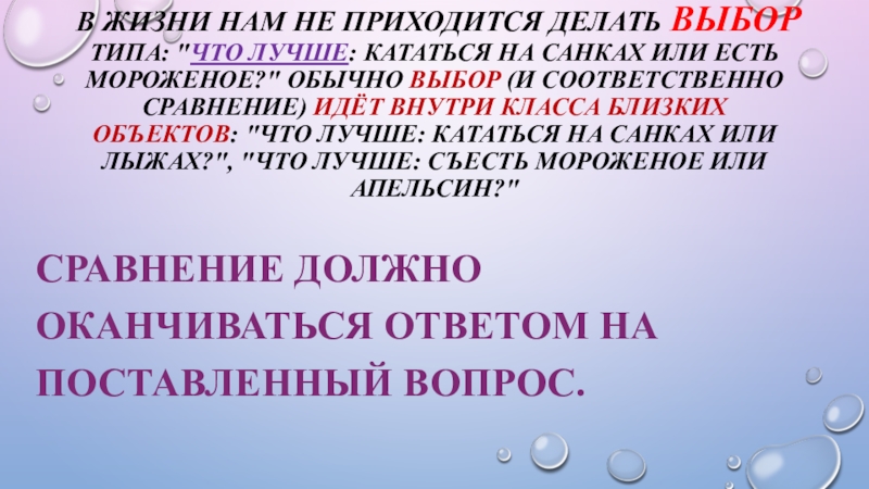 Сравнение должно оканчиваться ответом на поставленный вопрос.