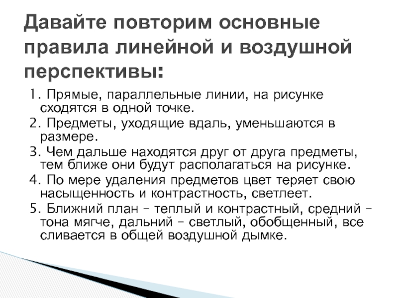 Давайте повторим основные правила линейной и воздушной перспективы: