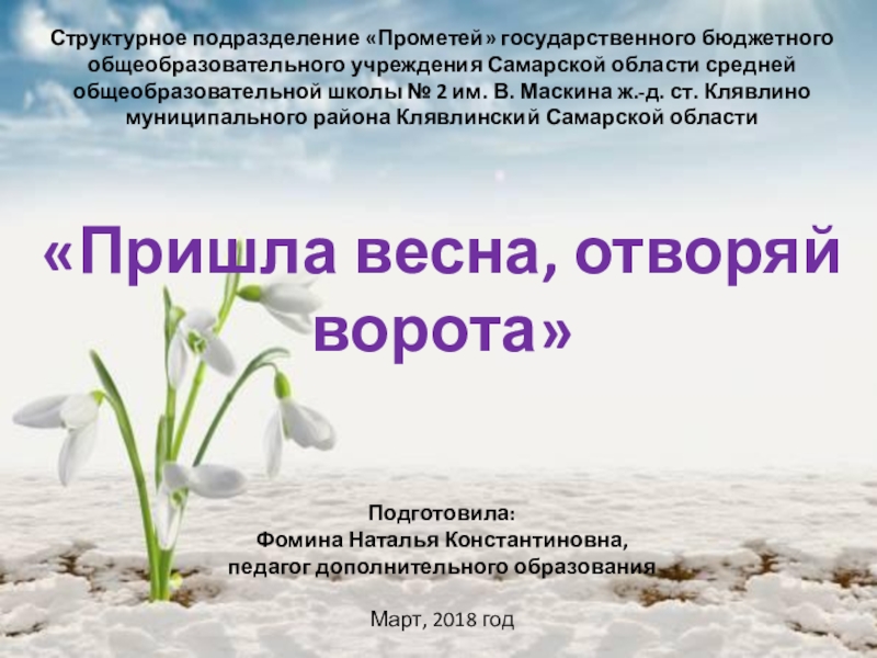 школы № 2 им. В. Маскина ж.-д. ст. Клявлино муниципального района Клявлинский Самарской области
