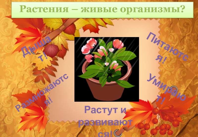 Растения – живые организмы?Дышат!Растут и развиваются!Питаются!Размножаются!