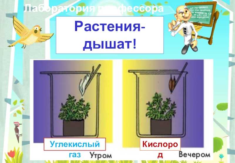 Лаборатория профессора ЗнайкиРастения- дышат!Углекислый газКислород