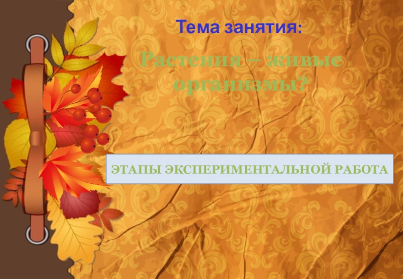 Растения – живые организмы?Тема занятия:ЭТАПЫ ЭКСПЕРИМЕНТАЛЬНОЙ РАБОТА