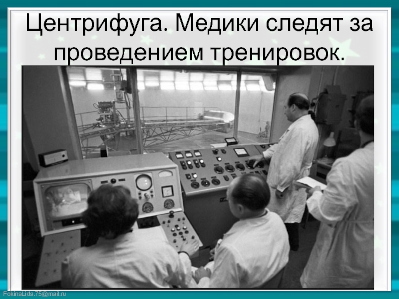 Слайд 19Центрифуга. Медики следят за проведением тренировок.