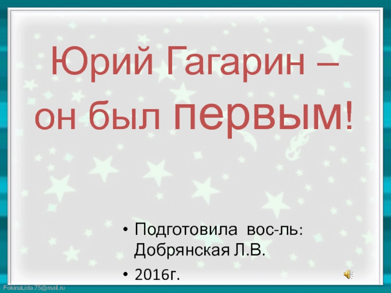 Юрий Гагарин –  он был первым!Подготовила вос-ль: Добрянская Л.В.2016г.