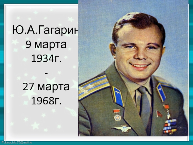Ю.А.Гагарин 9 марта 1934г. - 27 марта 1968г.