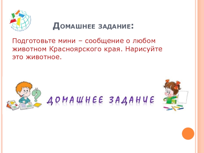 Подготовьте мини – сообщение о любом животном Красноярского края. Нарисуйте