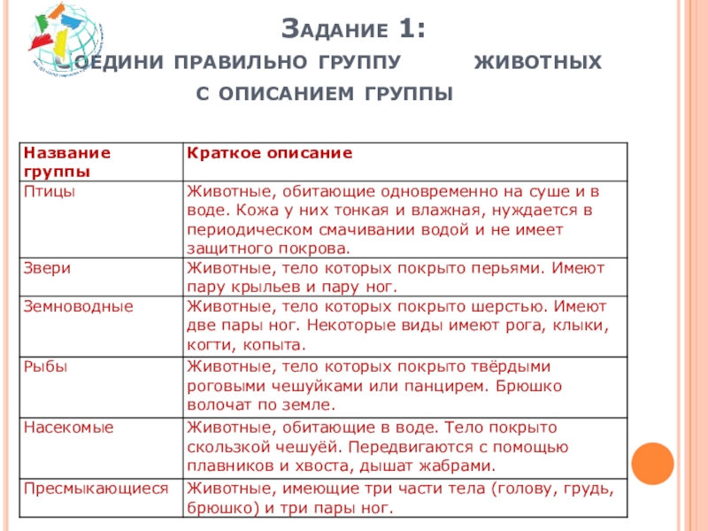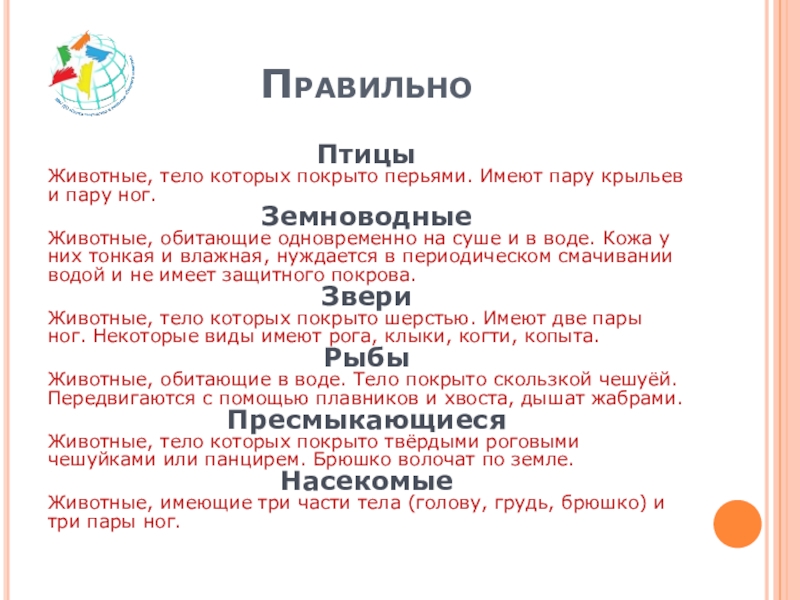 Разновидности животных (насекомых, рыб, птиц, зверей, земноводных, пресмыкающихся),