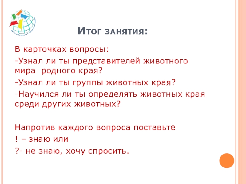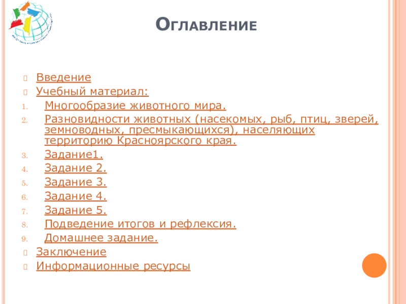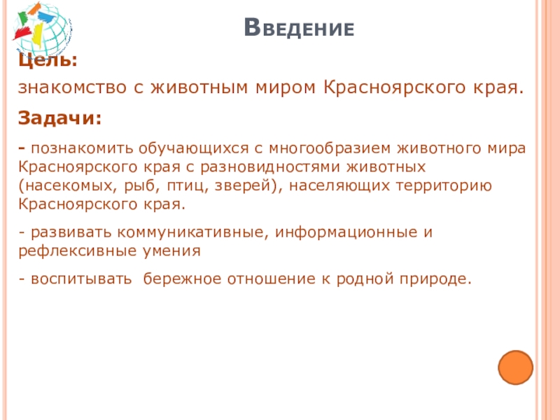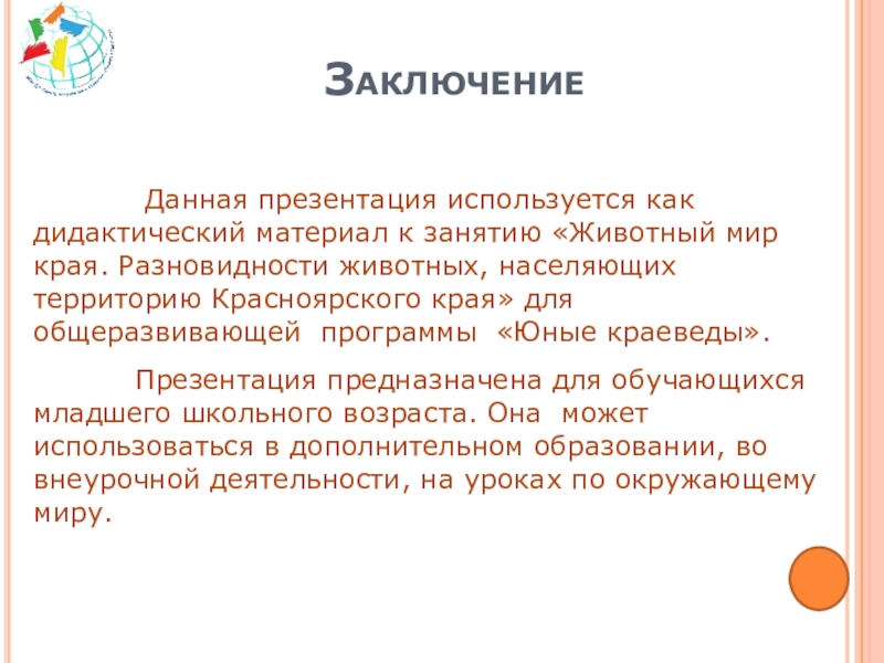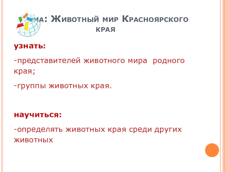 к занятию «Животный мир края. Разновидности животных, населяющих территорию Красноярского края» для общеразвивающей программы «Юные краеведы».