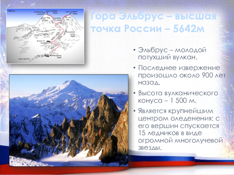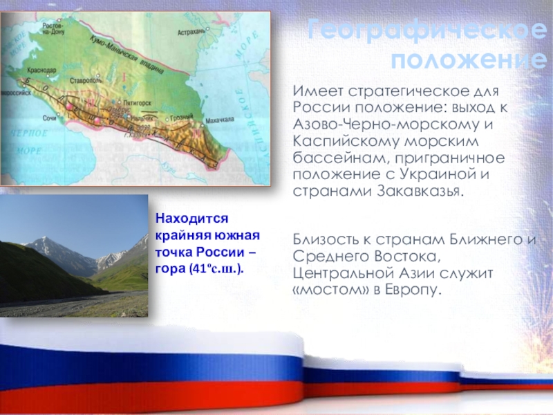 Находится крайняя южная точка России – гора (41ºс.ш.).