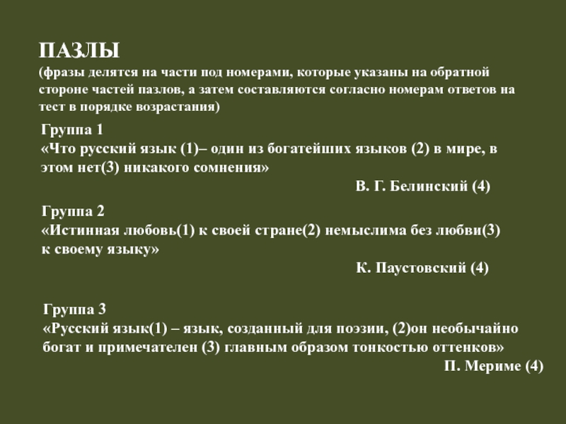 «Истинная любовь(1) к своей стране(2) немыслима без любви(3) к своему языку»