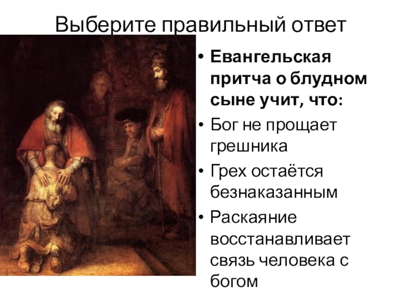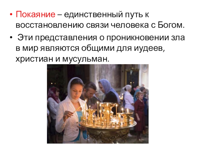 Слайд 7Покаяние – единственный путь к восстановлению связи человека с Богом.