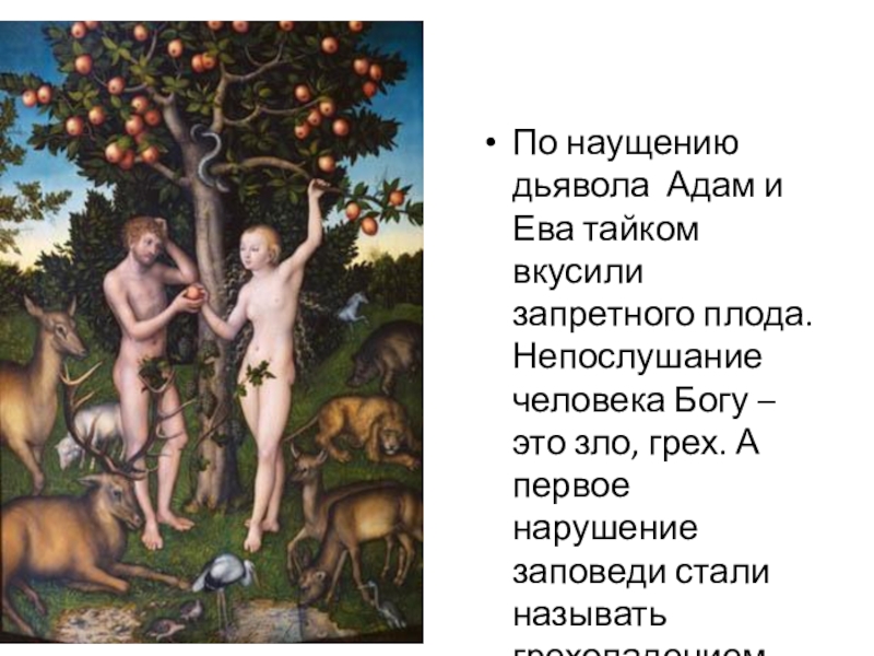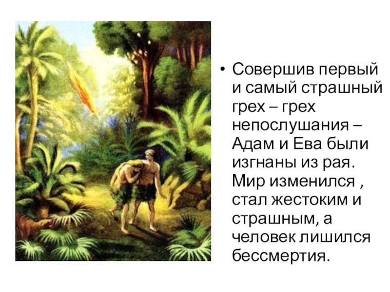 Слайд 6Совершив первый и самый страшный грех – грех непослушания – Адам
