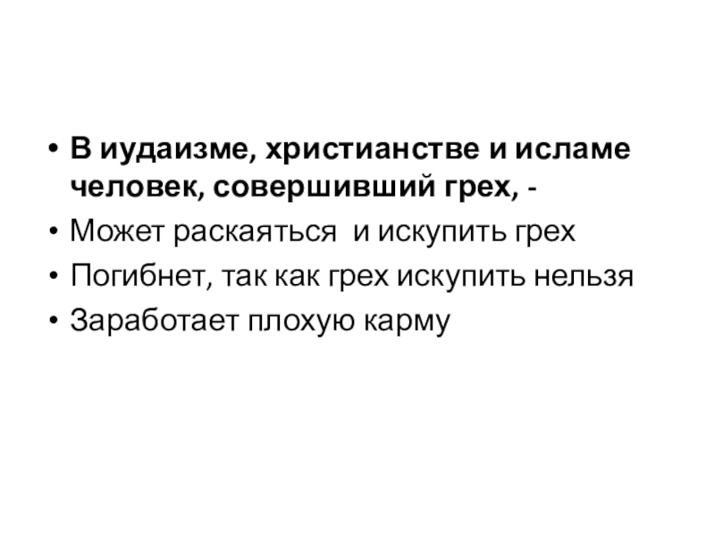 Слайд 18В иудаизме, христианстве и исламе человек, совершивший грех, -