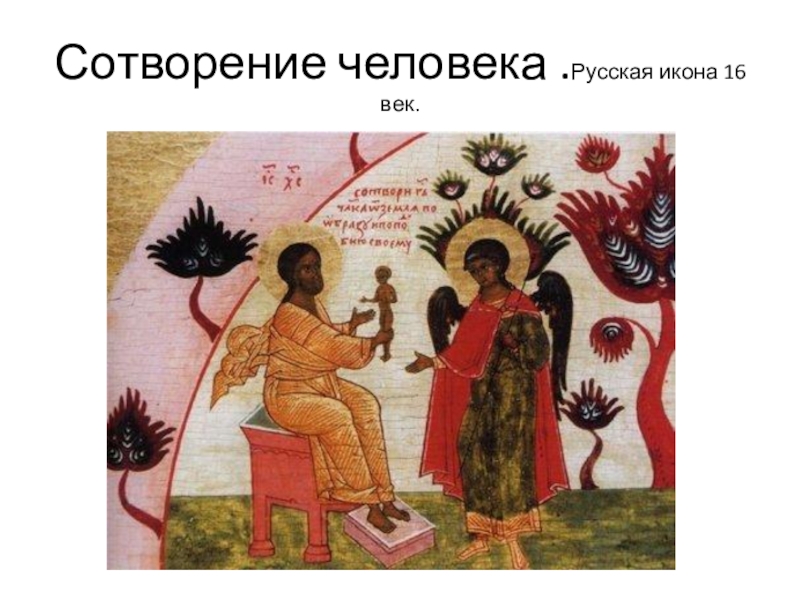 Слайд 2Сотворение человека .Русская икона 16 век.