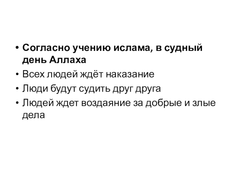 Слайд 21Согласно учению ислама, в судный день Аллаха