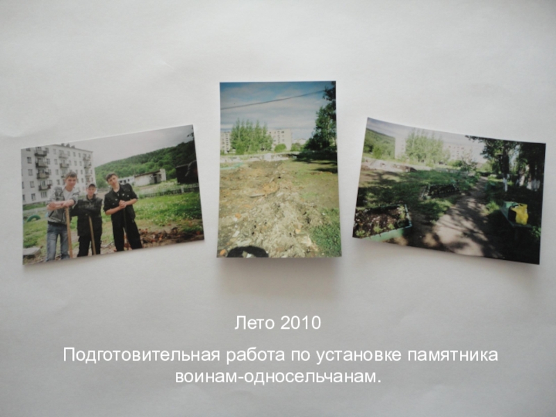 Лето 2010 Подготовительная работа по установке памятника воинам-односельчанам.