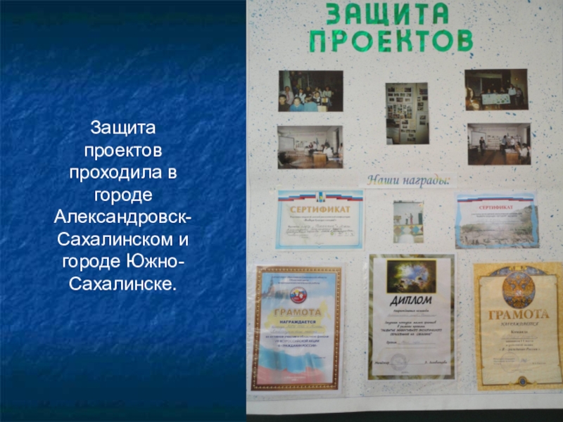 Слайд 19Защита проектов проходила в городе Александровск-Сахалинском и городе Южно-Сахалинске.