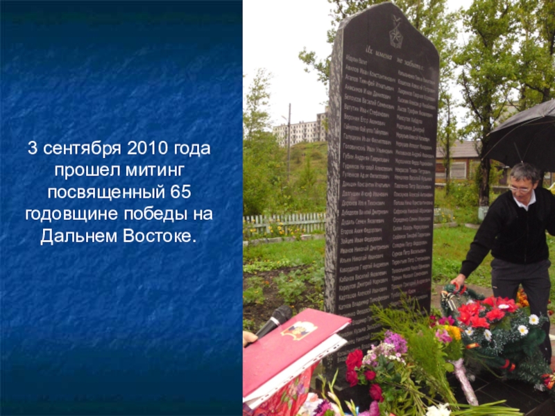 Слайд 183 сентября 2010 года прошел митинг посвященный 65 годовщине победы на