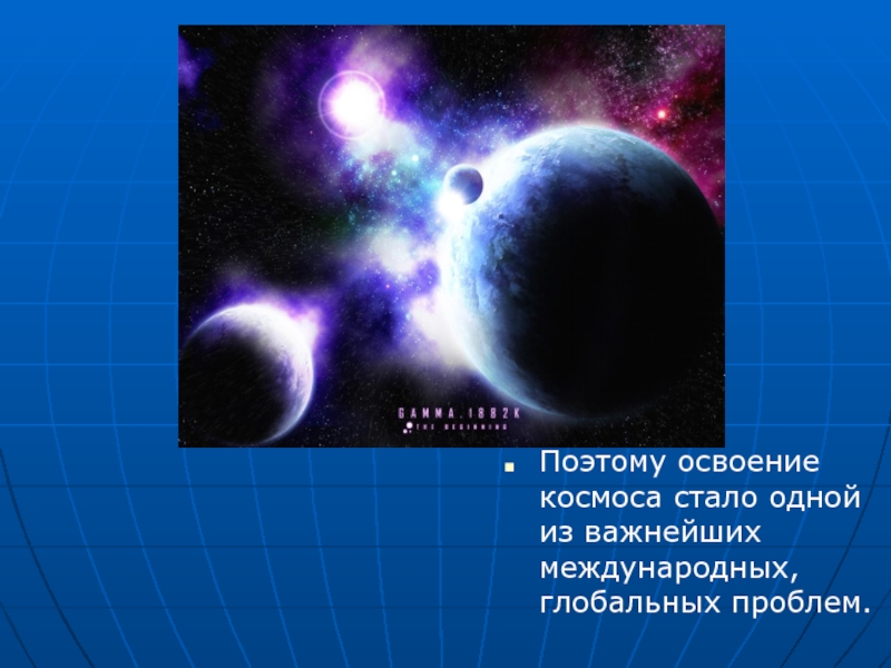 Слайд 7Поэтому освоение космоса стало одной из важнейших международных, глобальных проблем.