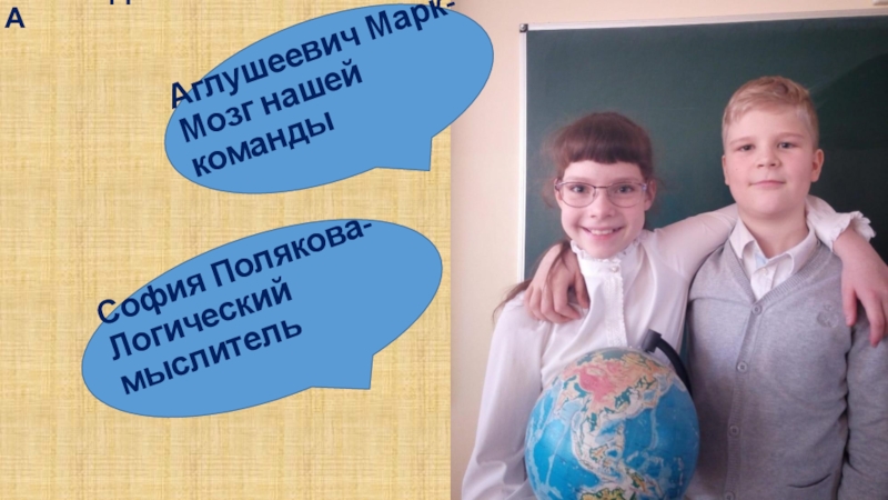 КОМАНДААглушеевич Марк- Мозг нашей команды София Полякова- Логический мыслитель
