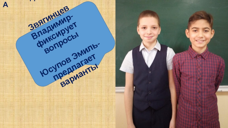 Звягинцев Владимир-фиксирует вопросыЮсупов Эмиль- предлагает вариантыКОМАНДА