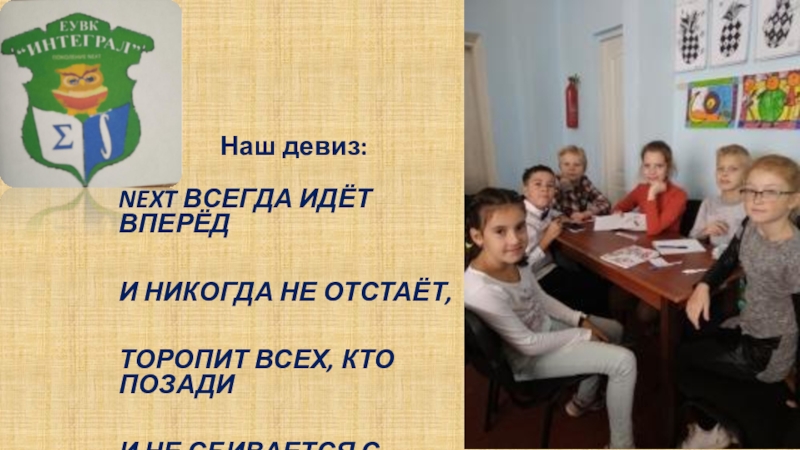 Наш девиз:NEXT ВСЕГДА ИДЁТ ВПЕРЁД И НИКОГДА НЕ ОТСТАЁТ,ТОРОПИТ ВСЕХ, КТО ПОЗАДИИ НЕ СБИВАЕТСЯ С ПУТИ!!!
