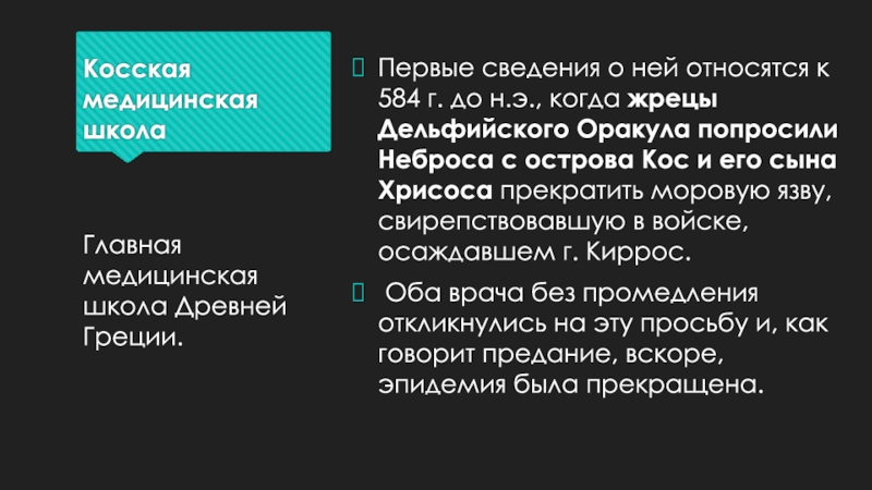 Главная медицинская школа Древней Греции.