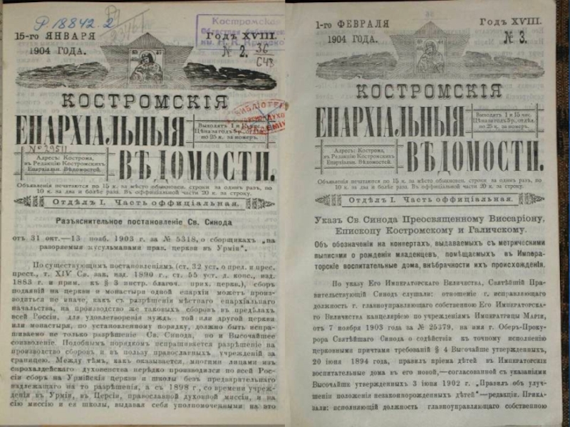 Епархиальные ведомости – это местные официальные церковные периодические издания,