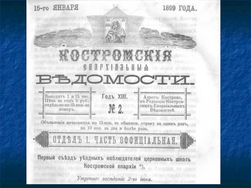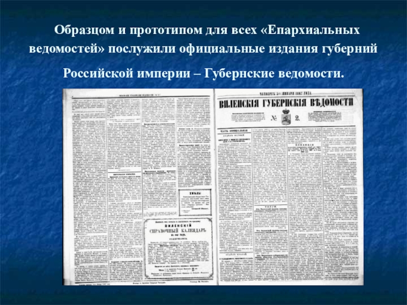 Слайд 6 Образцом и прототипом для всех «Епархиальных ведомостей» послужили официальные издания