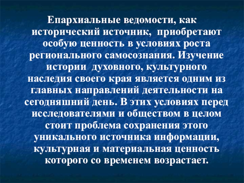 Епархиальные ведомости, как исторический источник, приобретают особую ценность в условиях роста