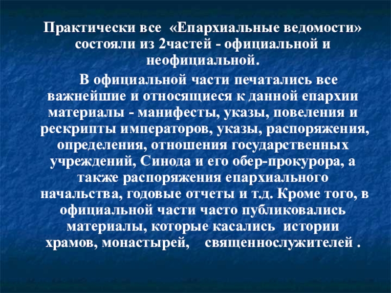 Практически все «Епархиальные ведомости» состояли из 2частей - официальной