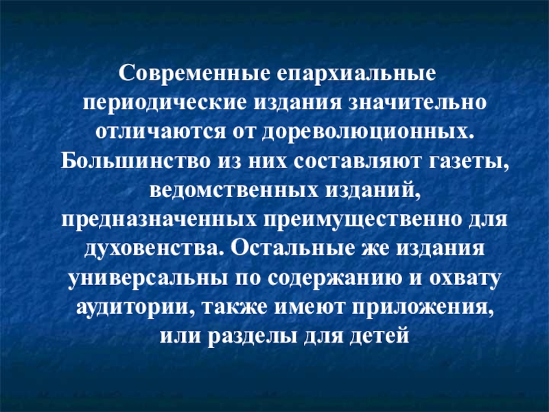 Современные епархиальные периодические издания значительно отличаются от дореволюционных. Большинство