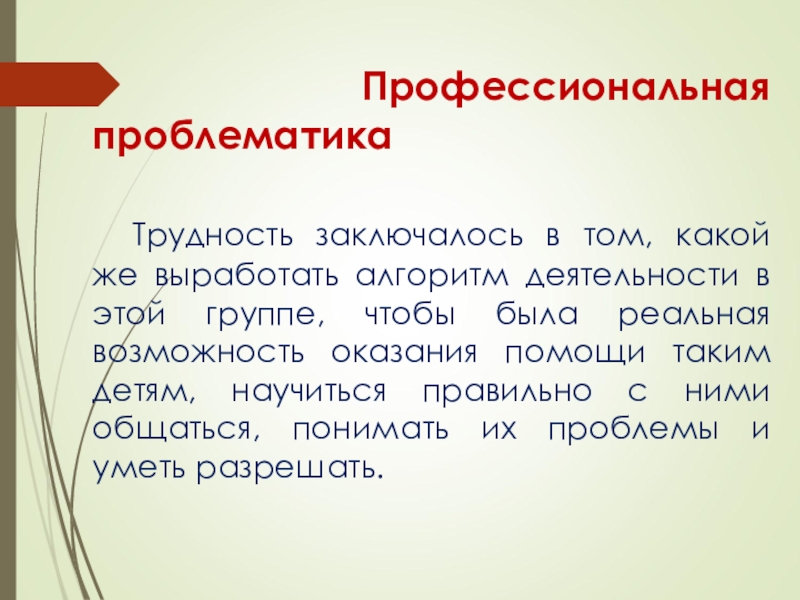же выработать алгоритм деятельности в этой группе, чтобы была реальная возможность оказания помощи таким детям, научиться правильно с ними общаться, понимать их проблемы и уметь разрешать.