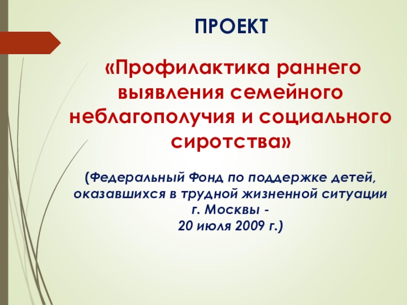 «Профилактика раннего выявления семейного неблагополучия и социального сиротства»